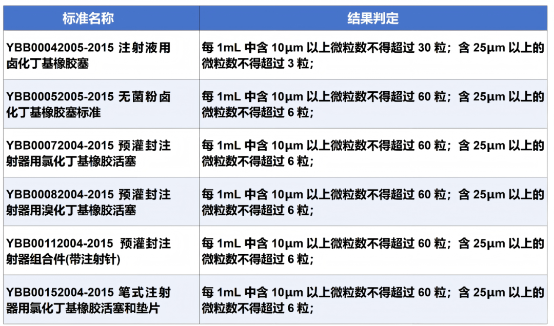 虽然《中国药典》2025版<4206>章节未直接给出药包材不溶性微粒的判定限值,但药典委在解读中“2025版《中国药典》颁布后,药包材标如何执行",对此进行了回复:药包材企业应在确认包材符合预期药用要求的基础上,遵照关联审评的相关规定,并参考2025版《中国药典》药包材相关指导原则及2015版YBB品种标准,确定质量标准,进行质量控制[5]。因此,不溶性微粒的判定结果仍可沿用YBB标准中的限度,确保质量控制有据可依,详细判断限制见表2。