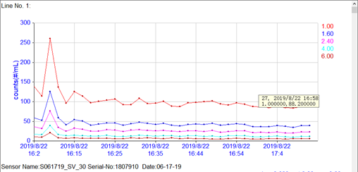 Fig.6 FMS在线监测数据,通过此图可监测不同粒径通道颗粒物含量,此外,通过产线样本颗粒度变化趋势,让异常无处隐藏。