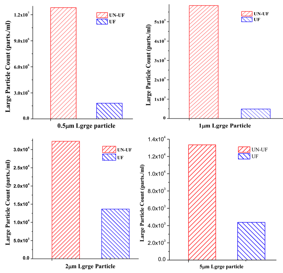 图3.4预过滤和过滤后胶体二氧化硅的 C4# 研磨液的LPC