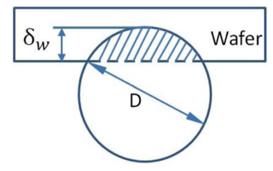 图3.13 颗粒直径和颗粒进入晶圆表面的压痕深度示意图