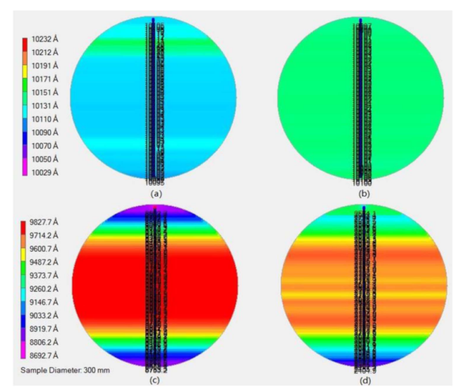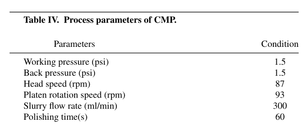 h1、h2 分别是抛光前和抛光后 TEOS的厚度。MRRAvg 和 σMRR 分别是平均 MRR 和 MRR 的标准偏差。