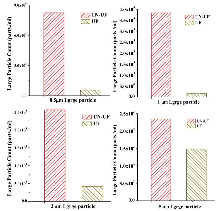 图3.4预过滤和过滤后胶体二氧化硅的 C4# 研磨液的LPC